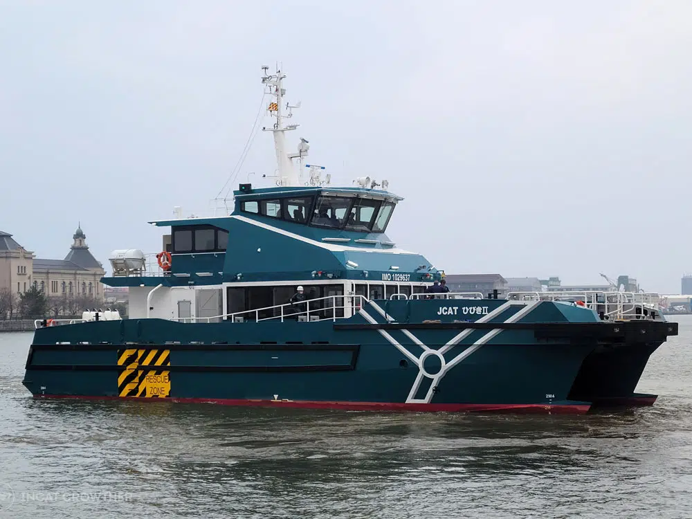 There have been a few short-term setbacks over the past five years, mainly related to supply chain glitches, inflation and technical challenges. However, Japan’s potential for an offshore wind infrastructure exceeding 9,000TWh per year has attracted OEMs, suppliers, service providers – and, of course, boat operator and builders. For example, this year saw Japanese operator Tokyo Kisen Co take delivery of the first of two bespoke aluminium crew transfer vessel (CTV) catamarans. The first in the new TK-27 class, designed exclusively for Tokyo Kisen by Australian naval architect Incat Crowther, completed its sea trials in late 2024, before being delivered to the operator in April 2025.
